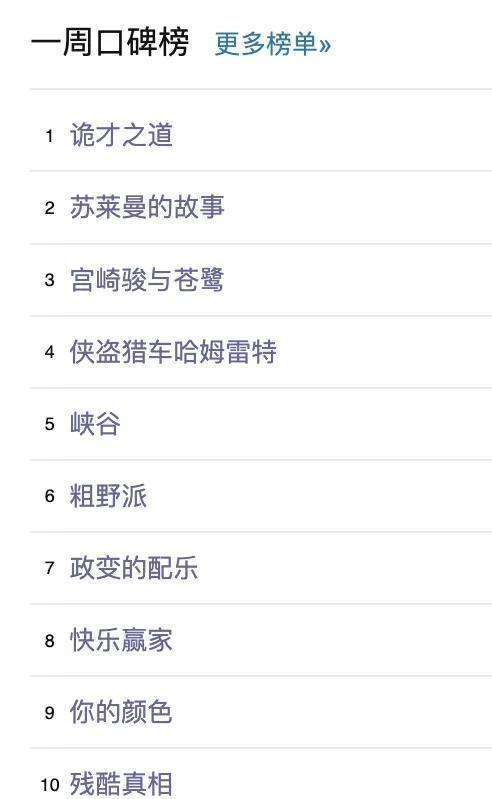 粗略呢,即是这么。 感酷爱的一又友,如故可以去找来其中的影片望望,也许,就会有惊喜呢。 终末,如故例行附上一周豆瓣口碑榜的竣工榜单:
