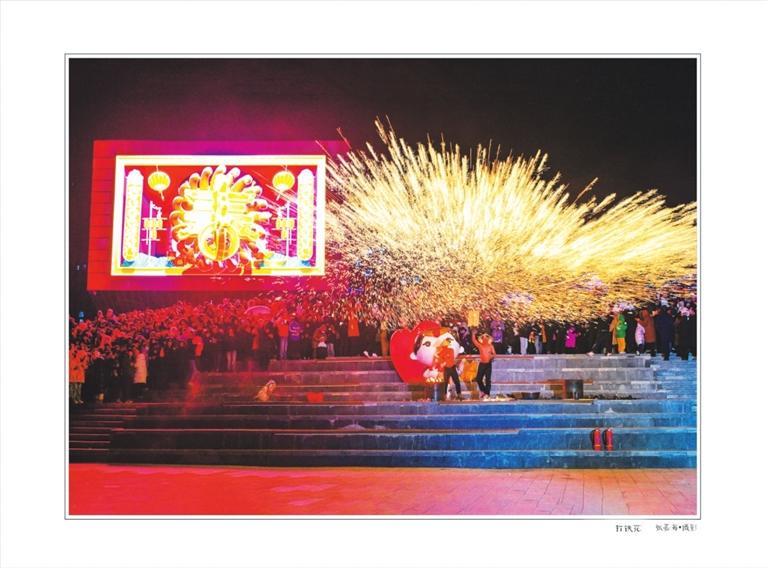 非遗代表性表情打铁花在失业街区上演。