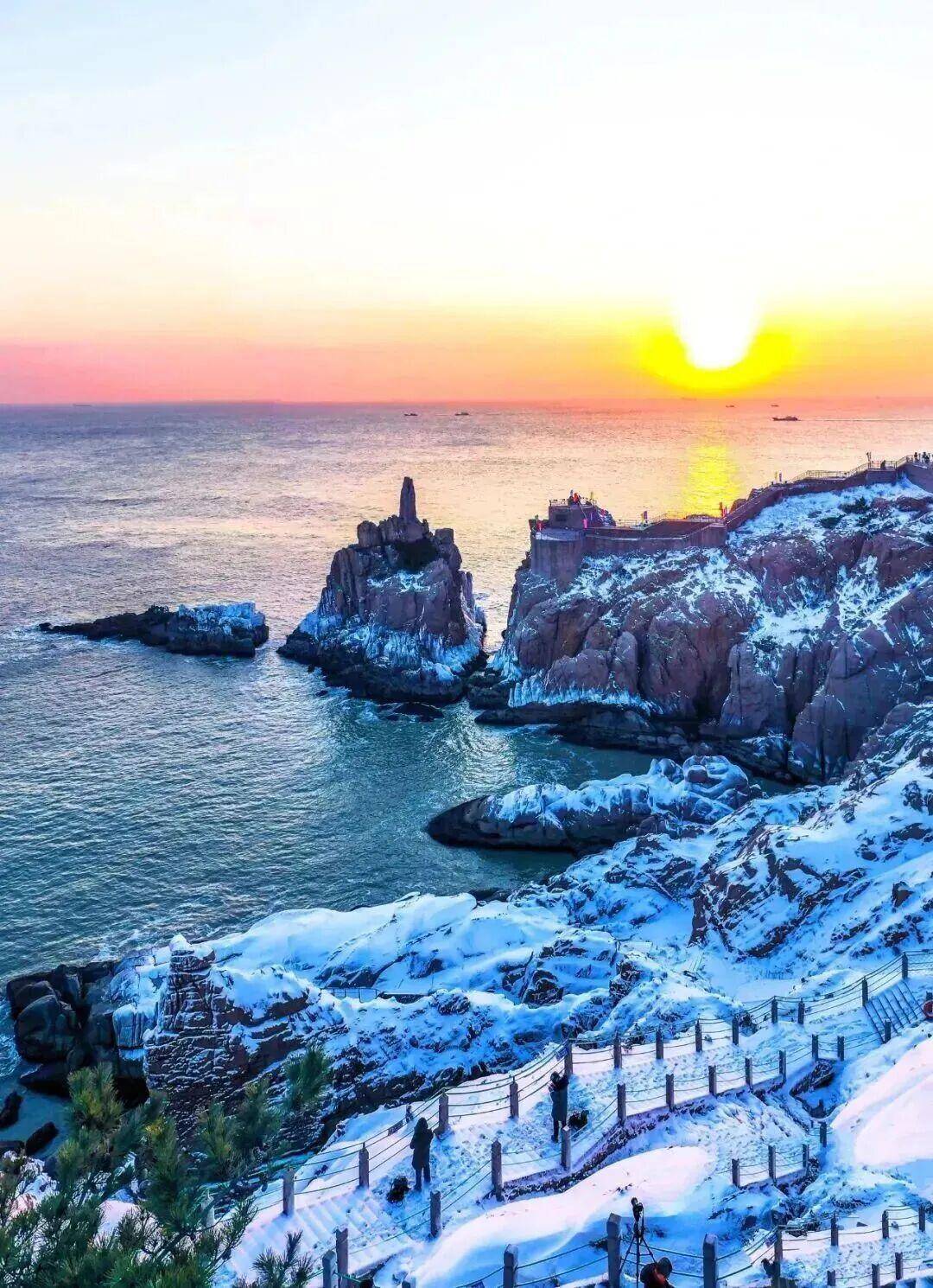 成山头地处威海荣成,是中国大陆海岸线的最东端,素有“天至极”之称,这里是中国最早看见海上日出的场地。
