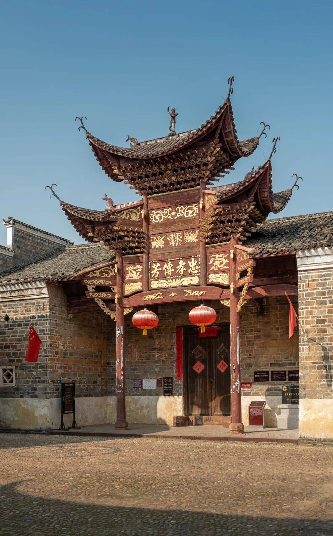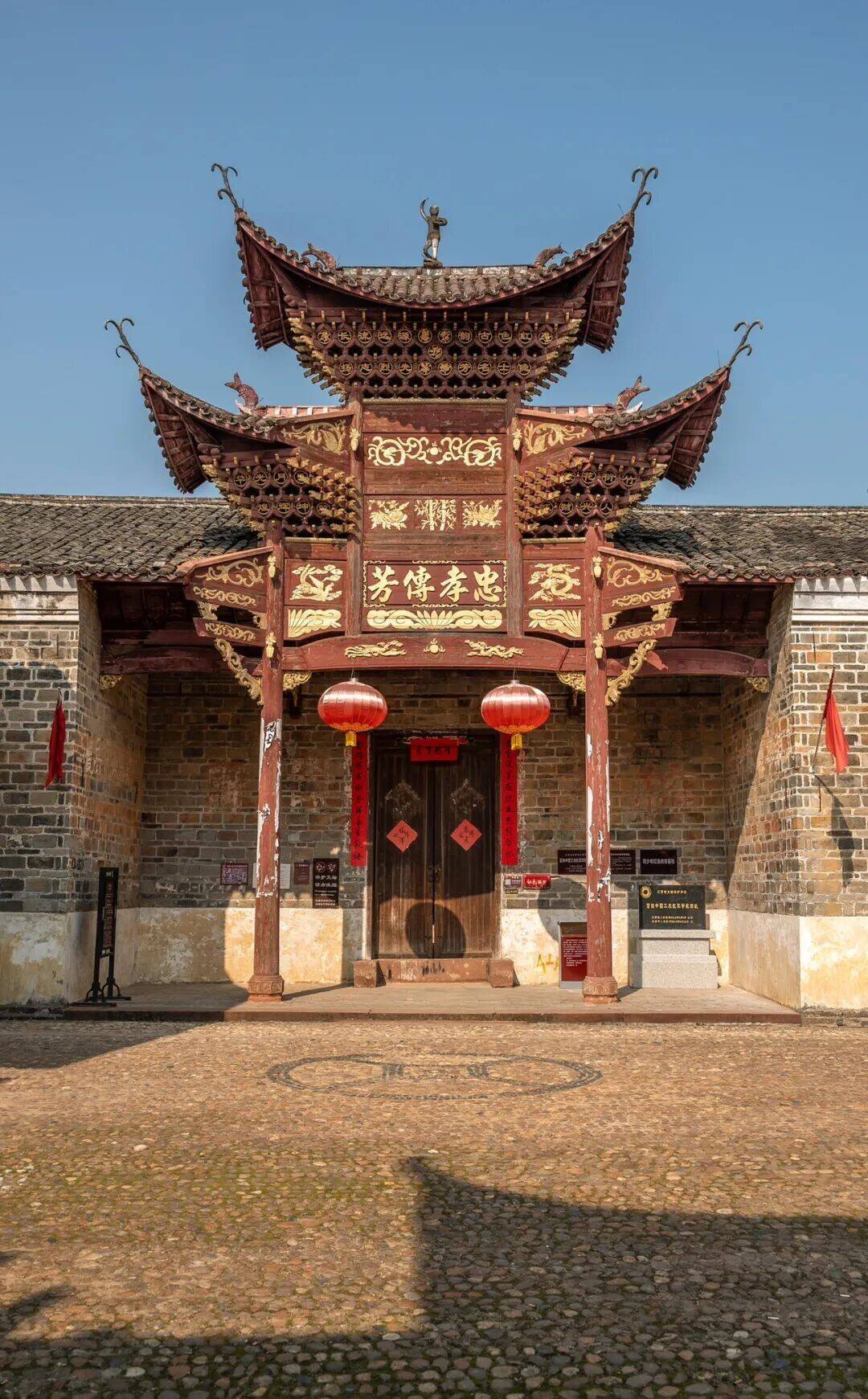 村内最打眼的,等于数不清的古祠堂和木牌坊,一座连着一座,声威不相似,韵味也各不换取。重檐歇山的形制,翘角高高扬起,像要挣脱屋顶飞向天外,朱红的立柱撑着沉着的屋身,历经风雨依旧千里稳,木雕、彩绘就藏在细节里,梁枋、斗拱、窗格、门板,一刀一凿齐尽心,花样虽有些褪去,线条依旧了了,花鸟走兽、东谈主物故事、平稳纹样,密密匝匝又有层有次,庄重里带着丽都,持重中藏着小巧,莫得过度雕琢的匠气,多的是世代相传的尽心。这些建立不仅仅用来祭祀的时局,更是胡氏族东谈主的精神根脉,从南宋初年迁居至此,近千年养殖孳生,一代又一代东谈主在这里建立、成长、老去,婚丧嫁娶、系族议事、节庆欢聚,十足围绕着这些祠堂伸开,一砖一瓦齐浸着家眷的记挂,一梁一柱齐载着岁月的分量。