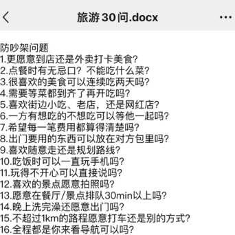 【和一又友一谈出游会碰到什么问题?】为了确保路径昂扬,况兼幸免无谓要的矛盾,网友追思了《旅游30问》,为的是和一又友出游能状态,防闹掰。