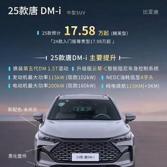 2025年,比亚迪行将推出多个新车型,例必拿下年销500万的策划! 比亚迪唐DMi开启新年第一弹,2025款唐DM-i车长4870mm,车高1725mm,轴距2820mm万博体育,空间浩荡,座椅选拔2+3+2的七座布局万博体育,起售价17.58万,这个价钱只可说是中规中矩,莫得让铺张者有冲动铺张的迹象! 唯独让东谈主有所费心的是,比亚迪在中大型SUV的销量并不好,比亚迪唐DMi能否解围,强势碾压联合车,就看友商们给不外劲了,要是祯祥、长安或长安推出几款针对性廉价爆款车,比亚迪唐DMi详情会降价促销!到时辰,又是一派血海!