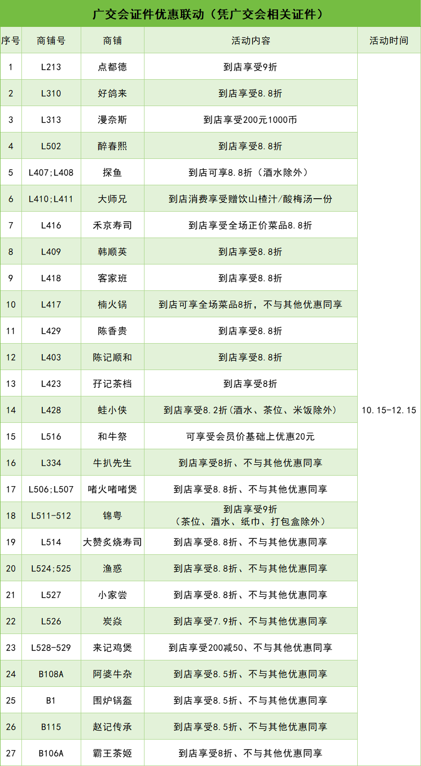 高效通关不仅带来客流增长,更鞭策“通关+铺张”双向赋能。记者从南沙区商务局了解到,为延迟行状链条,南沙区内商圈、货仓及餐厅同步推出广交会客商专属优惠。