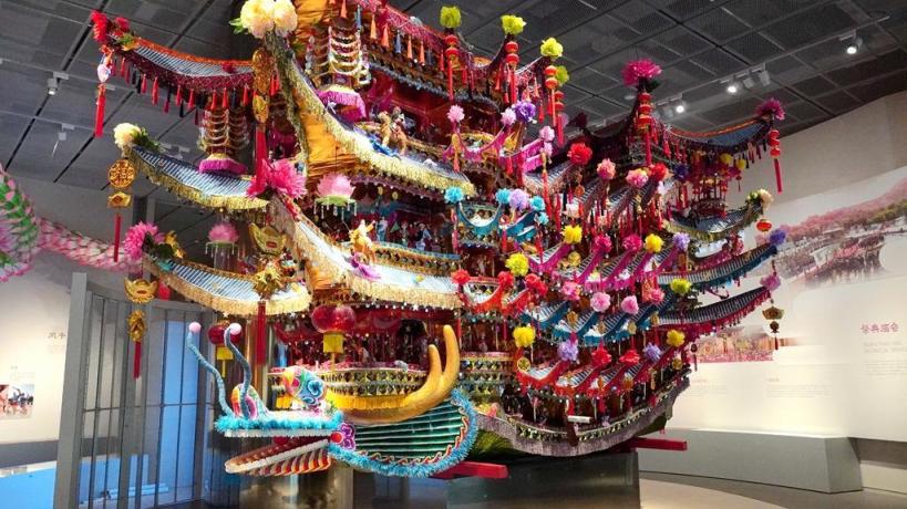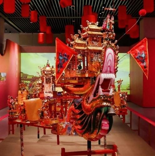 与它们比较,以乐清首饰龙为交流的温州乐清龙档,腾挪翻腾的天真劲儿虽不足,却以丽都细密见长。