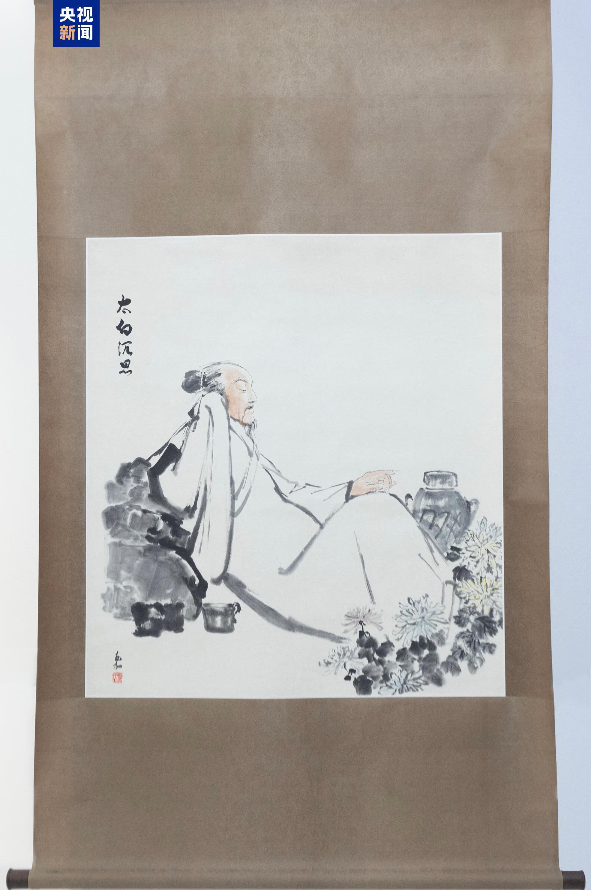 行为现场,蒋代明深情记忆了外祖父和父亲与湖州的深厚渊源。上世纪50年代,外祖父曾保藏了湖州赵孟頫摹仿的《兰亭序》,其后老东谈主家把这件珍品捐献给了故宫博物院,父亲蒋兆和先生如故为文房四宝之一的湖笔格外作画。蒋代明暗意,不时艺术初心、传承湖州之缘,这次将父亲的画作《太白千里念念图》捐送礼艺术里的中国成列馆,期待更多不雅众或者现场恍悟蒋兆和先生作品的特有艺术魔力。成画于1979年的《太白千里念念图》是蒋兆和先生的经典作品之一,画中诗仙李白醉卧于菊酒之间,寥寥数笔勾画出宁静得志、念念绪悠远的东谈主物形象,与历代画作中洒脱潇洒的诗仙形象天地之别,展现了蒋兆和先生深厚的艺术功底和对传统文化的更正抒发。