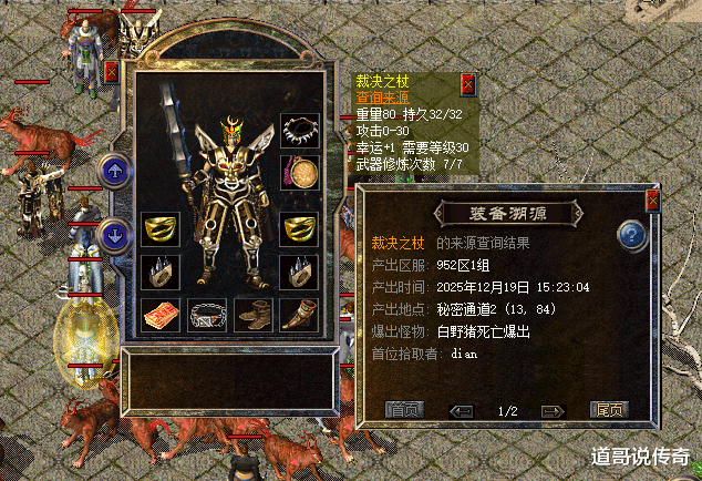第一,裁决之杖小白不仅看起来肥嘟嘟的,产出也优秀,往常最令东谈主狂热的产出等于祖玛三神兵,尤其是封魔谷更新之后小白不仅刷新地点更多,而况爆率似乎也加多不少。如上图所示,这把裁决之杖就产自微妙通谈的小白,这得益呱呱叫,2000+又平直了。