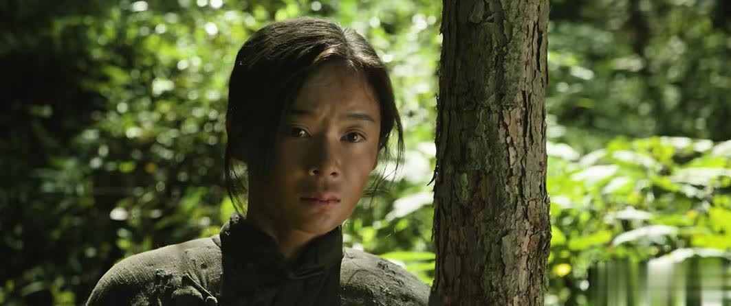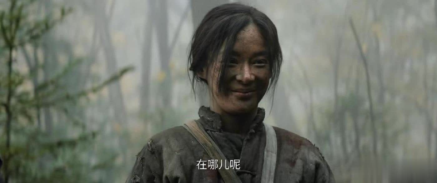 比如在为战友包扎伤口的戏份中,她用牙齿撕下绷带给战友包扎,展现出一个女孩在干戈中被动成长的真实情景。