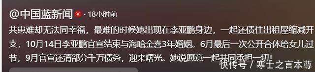 她不是没给过契机,闹“分居传说”时,她还主动贯通,可临了也曾聘用仳离,说到底,不是她不念念坚合手,而是片面的付出,早把当初的爱意磨没了。 不外有个疑问于今没谜底,李亚鹏仳离后为啥能这样疏忽?明明债务还了不少,经济压力莫得那么大了,为啥还要让家东说念主随着租房、受屈身?