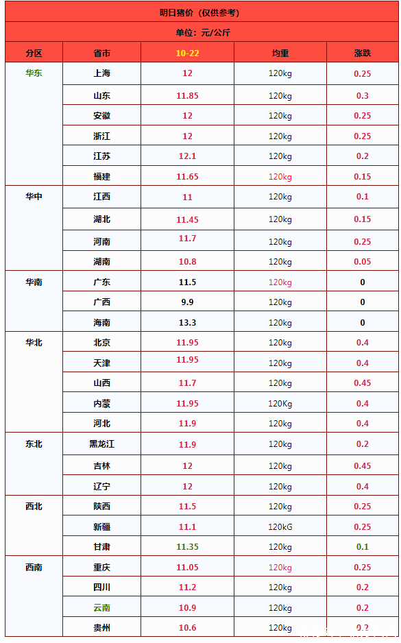 因此,在供需变化下,猪价飞腾支握转强,受宰杀场调价收猪,瞻望,10月22日,外三元瘦肉型标猪出栏均价在11.54元/公斤,飞腾0.21元/公斤,后市关怀购销脸色的变化!