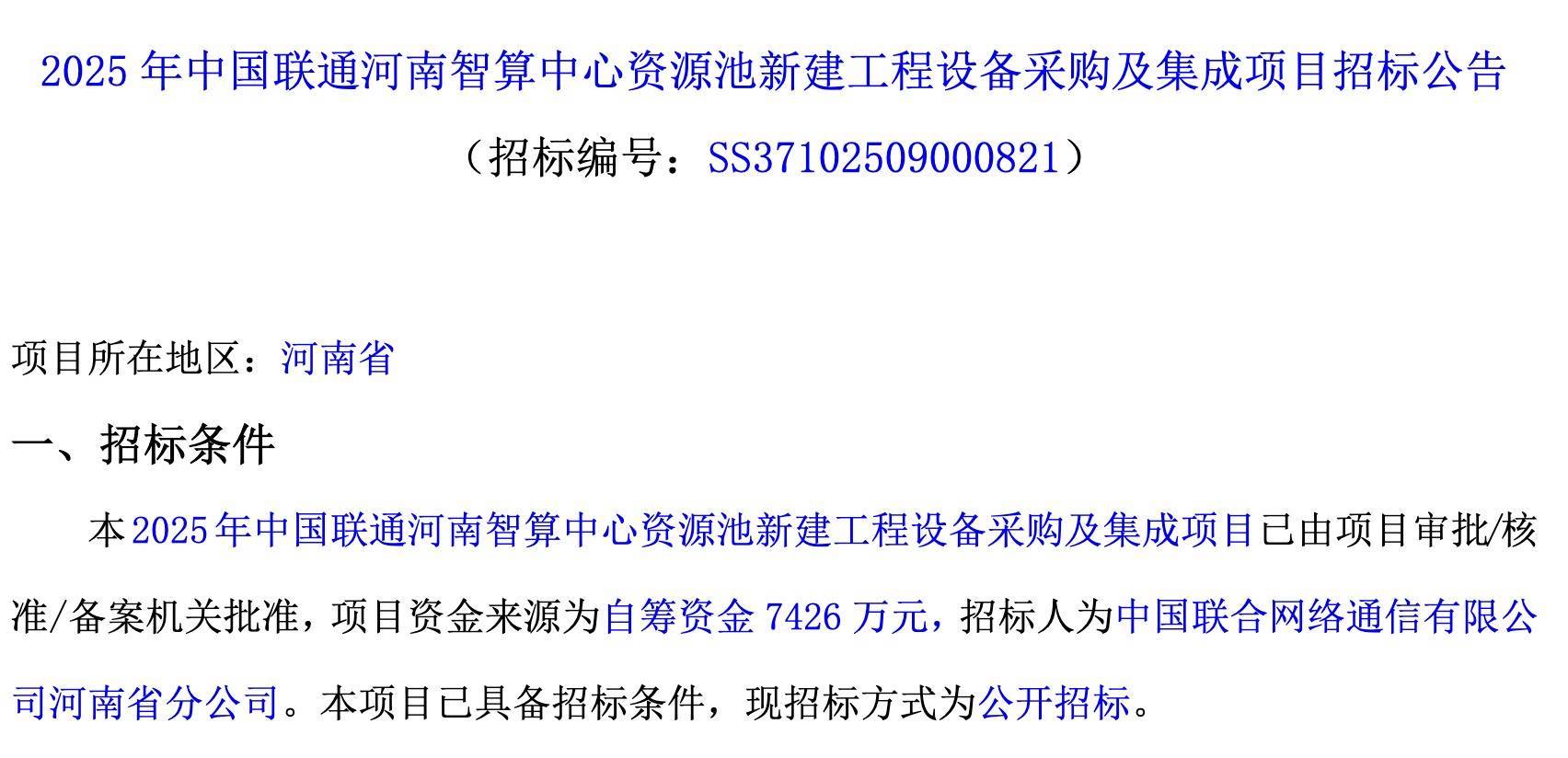 智东西10月27日报说念,10月22日,中国联通发布“2025年中国联通河南智算中心资源池新建工程开拓采购及集成边幅”中标成果,中兴通讯中标,中标价钱为7170.9万元。